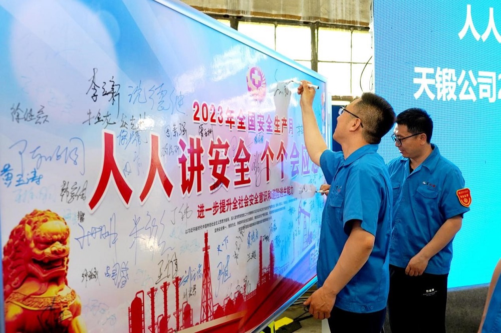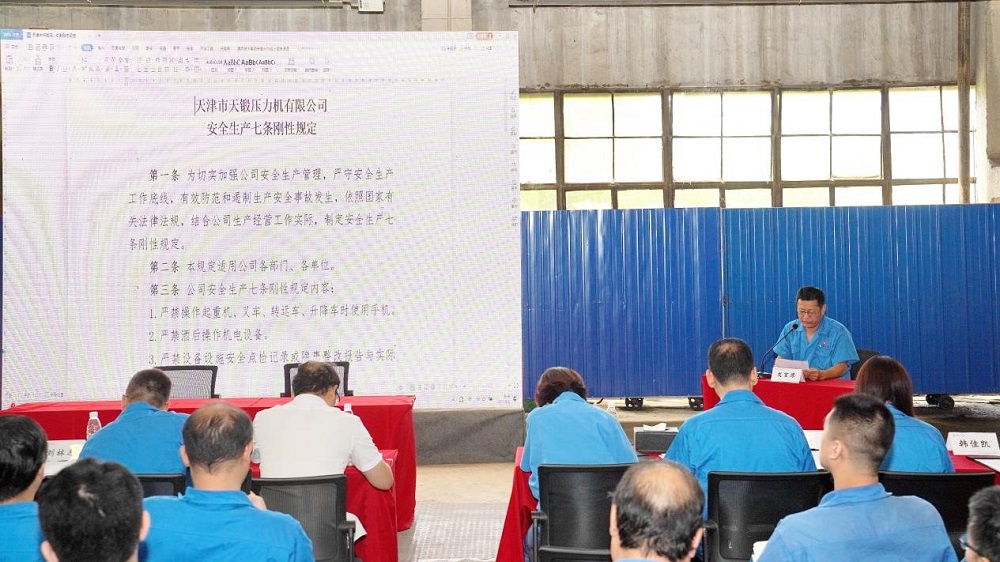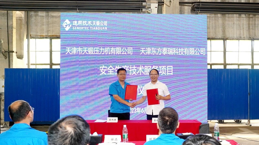 6月6日上午,天鍛公司在機(jī)加工車(chē)間舉行2023年“安全生產(chǎn)月”活動(dòng)啟動(dòng)大會(huì)。副總經(jīng)理張敬波主持會(huì)議,宣讀了天鍛公司2023年“安全生產(chǎn)月”活動(dòng)總體實(shí)施方案和重大事故專項(xiàng)排查整治行動(dòng)方案??偨?jīng)理劉林志宣讀了《天鍛公司安全生產(chǎn)七條剛性規(guī)定》,并代表公司與天津東方泰瑞科技有限公司簽署了安全生產(chǎn)咨詢服務(wù)合同。