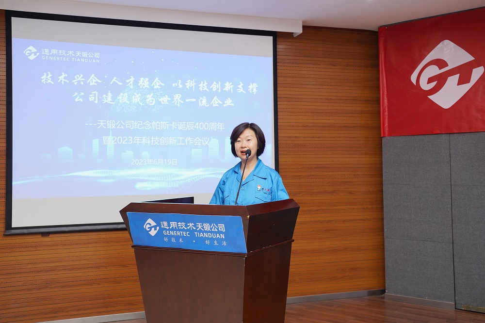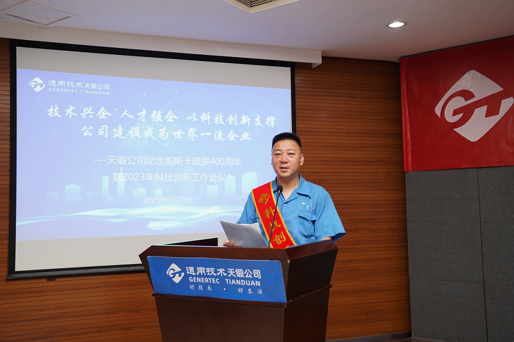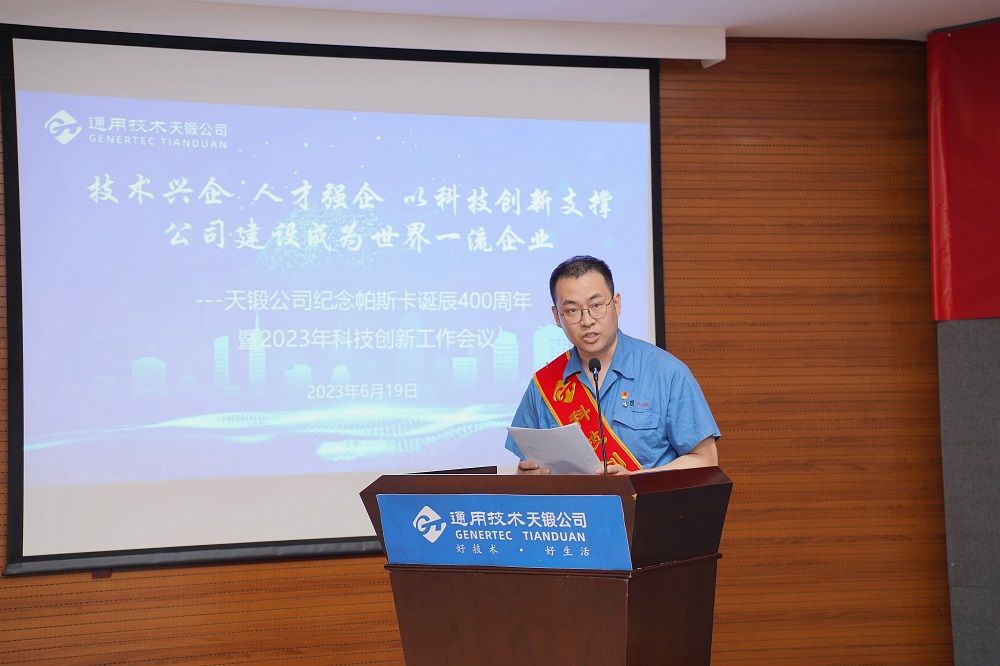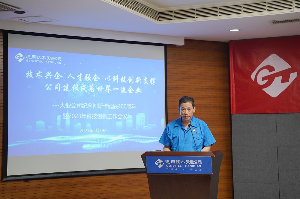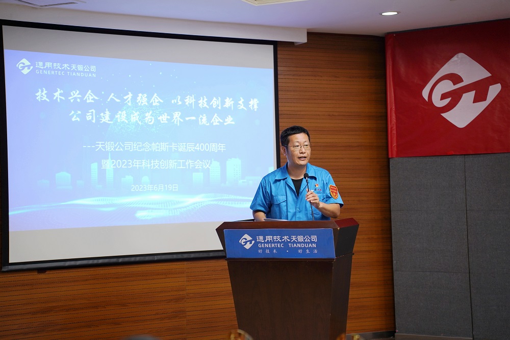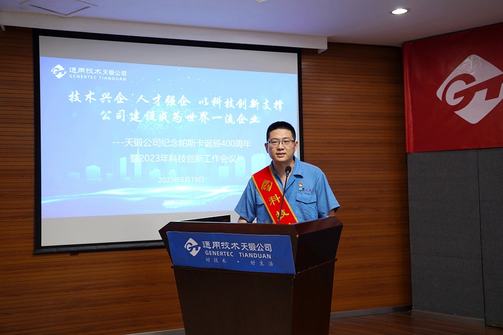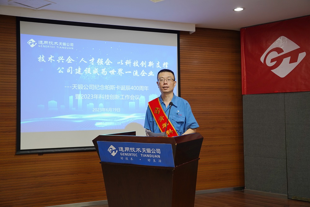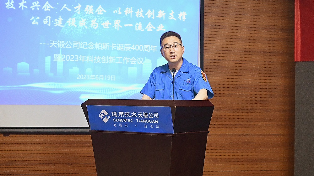 2023年6月19日,時(shí)逢法國科學(xué)家布萊士·帕斯卡誕辰400周年,天鍛公司隆重召開紀(jì)念帕斯卡誕辰400周年暨2023年科技創(chuàng)新工作會議,會議主題是“技術(shù)興企,人才強(qiáng)企,以科技創(chuàng)新支撐公司建設(shè)成為世界一流企業(yè)”。公司領(lǐng)導(dǎo)、有關(guān)專家、科技人員代表、各單位和基層黨組織負(fù)責(zé)人共計(jì)近150人參會。