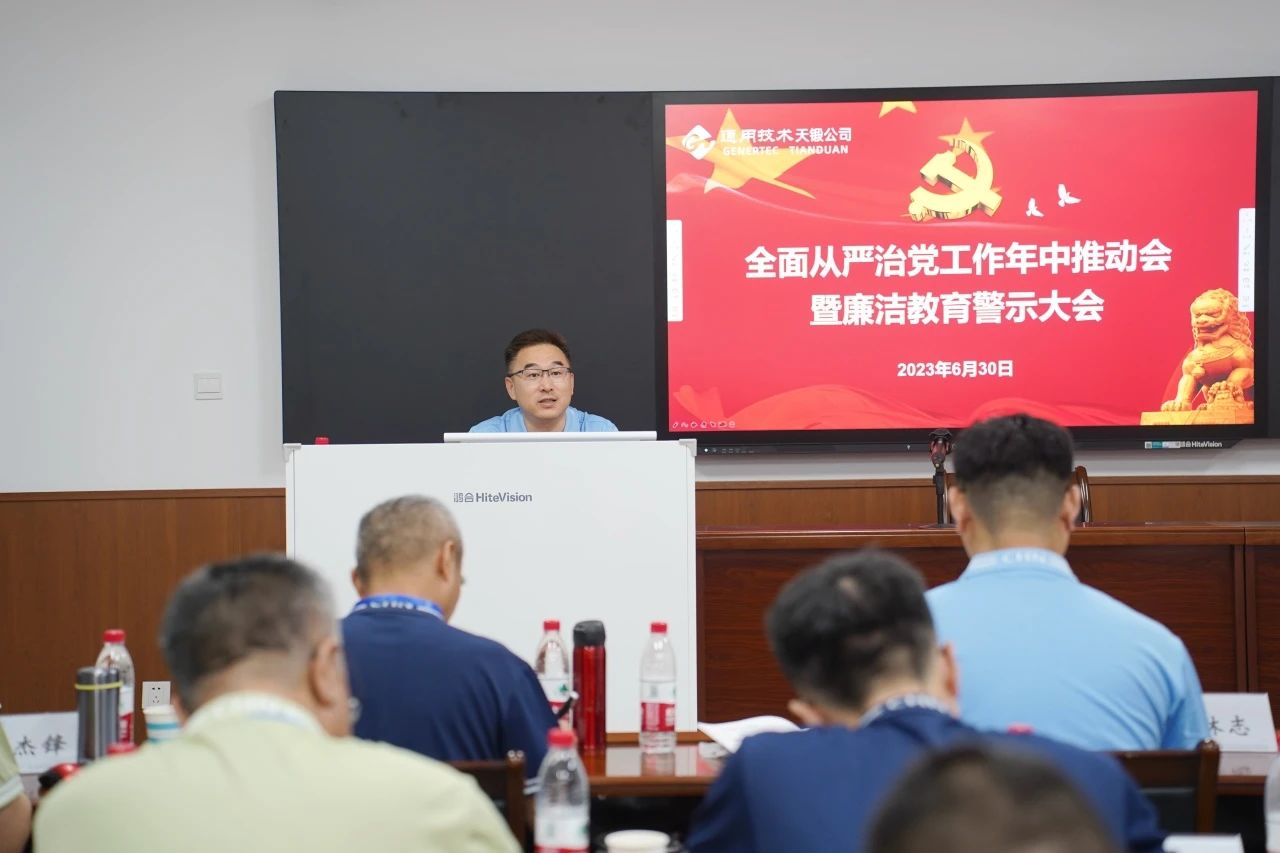 在專題黨課之后,紀(jì)委書記蘇杰鋒主持召開了公司全面從嚴(yán)治黨工作年中推動(dòng)會(huì)暨廉潔教育警示大會(huì)。會(huì)上,黨委副書記盧東領(lǐng)學(xué)了從嚴(yán)治黨有關(guān)文件材料,大家集體觀看了警示教育專題片。劉國(guó)福代表公司黨委與領(lǐng)導(dǎo)班子成員、各單位負(fù)責(zé)人、基層黨組織負(fù)責(zé)人進(jìn)行了集體談話,強(qiáng)調(diào)公司要堅(jiān)定不移推進(jìn)全面從嚴(yán)治黨,為創(chuàng)建世界一流企業(yè)營(yíng)造風(fēng)清氣正的干事創(chuàng)業(yè)環(huán)境,要求各單位、各基層黨組織負(fù)責(zé)人發(fā)揮示范引領(lǐng)作用,做好本單位管黨治黨工作,做到清靜、干凈,知敬畏、有境界,不去想、不去做得不償失、悔之晚矣的事。