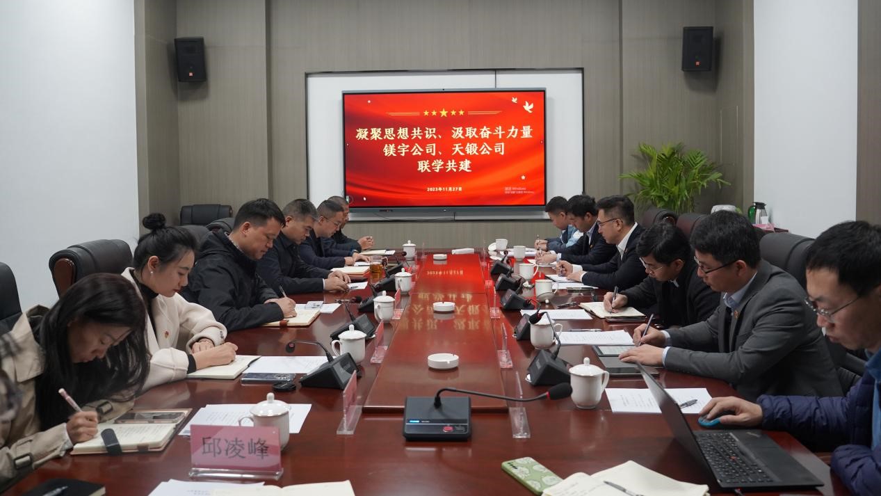 公司領(lǐng)導(dǎo)一行來(lái)到湖南鎂宇科技公司溝通交流有關(guān)項(xiàng)目進(jìn)展情況,并與鎂宇公司聯(lián)合開(kāi)展了“凝聚思想共識(shí)、汲取奮斗力量”主題教育黨課,深入理解習(xí)近平新時(shí)代中國(guó)特色社會(huì)主義思想的世界觀和方法論,積極研討如何貫徹落實(shí)總書(shū)記對(duì)新時(shí)代新征程國(guó)資央企工作的最新要求。