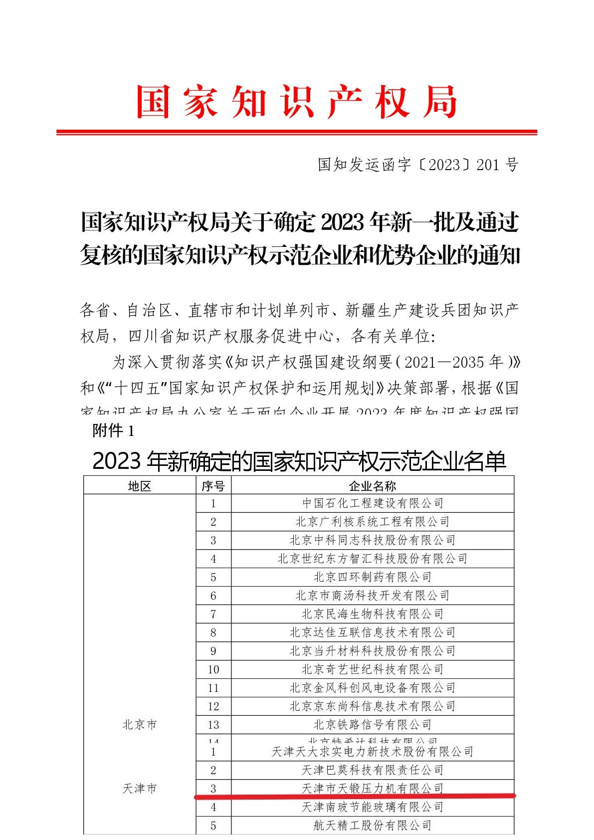近日,國家知識(shí)產(chǎn)權(quán)局發(fā)布《國家知識(shí)產(chǎn)權(quán)局關(guān)于確定 2023 年新一批及通過復(fù)核的國家知識(shí)產(chǎn)權(quán)示范企業(yè)和優(yōu)勢企業(yè)的通知》。經(jīng)企業(yè)申報(bào)、天津市知識(shí)產(chǎn)權(quán)局推薦、國家知識(shí)產(chǎn)權(quán)局批準(zhǔn),天鍛公司成功入選2023年新確定的國家知識(shí)產(chǎn)權(quán)示范企業(yè)名單。