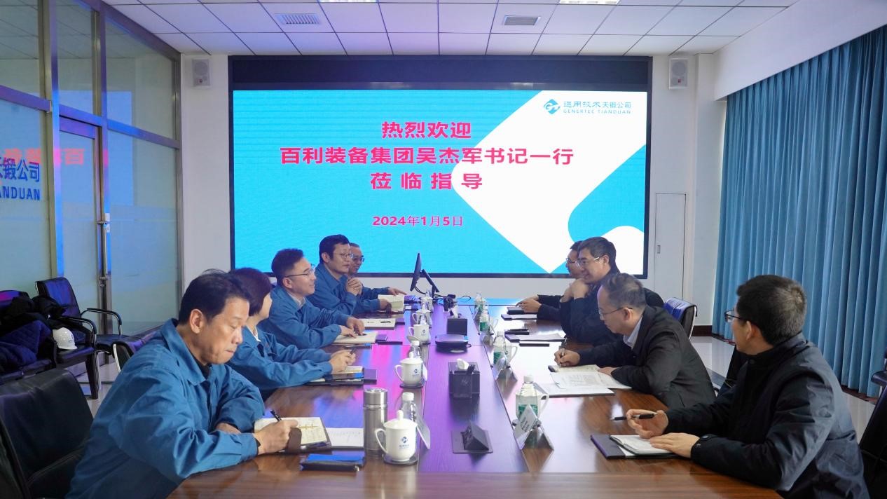 1月5日下午,百利裝備集團(tuán)董事長(zhǎng)、黨委書記吳杰軍一行到天鍛公司調(diào)研,公司領(lǐng)導(dǎo)劉國(guó)福、劉林志、盧東、張敬波、劉玉民及有關(guān)部門人員陪同。