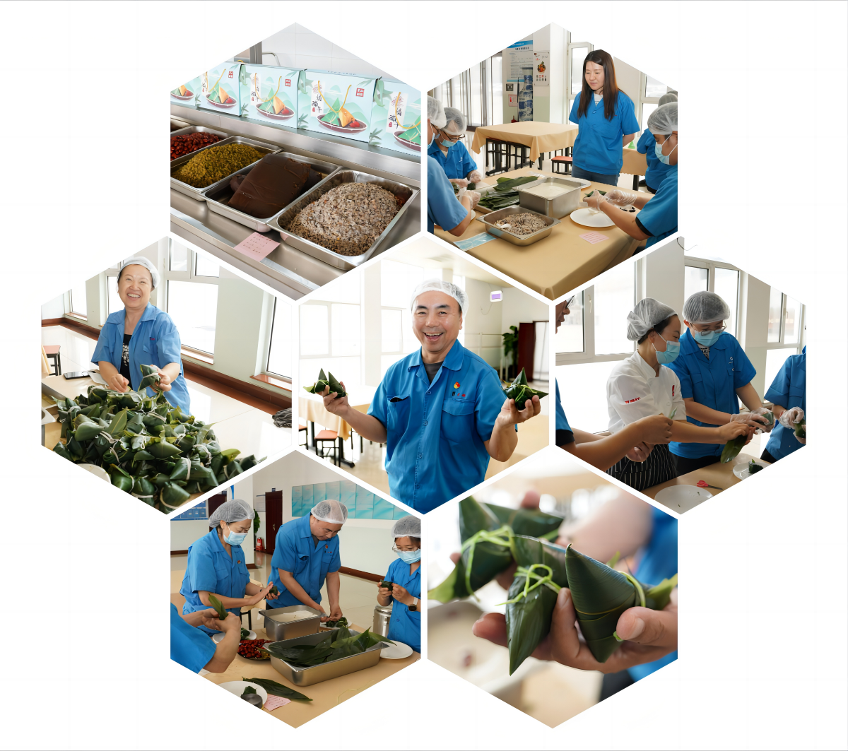 公司食堂內(nèi)熱鬧非凡,參賽員工們紛紛展現(xiàn)自己的技藝。他們手法嫻熟、動作迅速,一個個大小適中的粽子陸續(xù)出現(xiàn)在大家眼前。