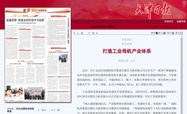 工業(yè)母機(jī)是裝備制造業(yè)發(fā)展水平的重要標(biāo)志。2022年8月,深耕液壓機(jī)行業(yè)60余年的天津市天鍛壓力機(jī)有限公司正式加入中國通用技術(shù)集團(tuán),開啟了發(fā)展新篇章。
